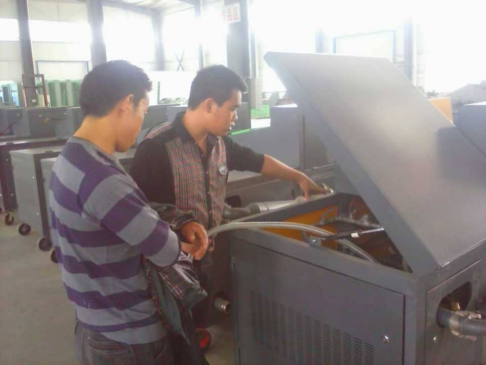 在我公司人员的陪同下,曹先生参观了设备生产工艺流程和屋面保温现场施工。对我公司设备的性能是赞不绝口,曹先生表示要和我公司合作。
